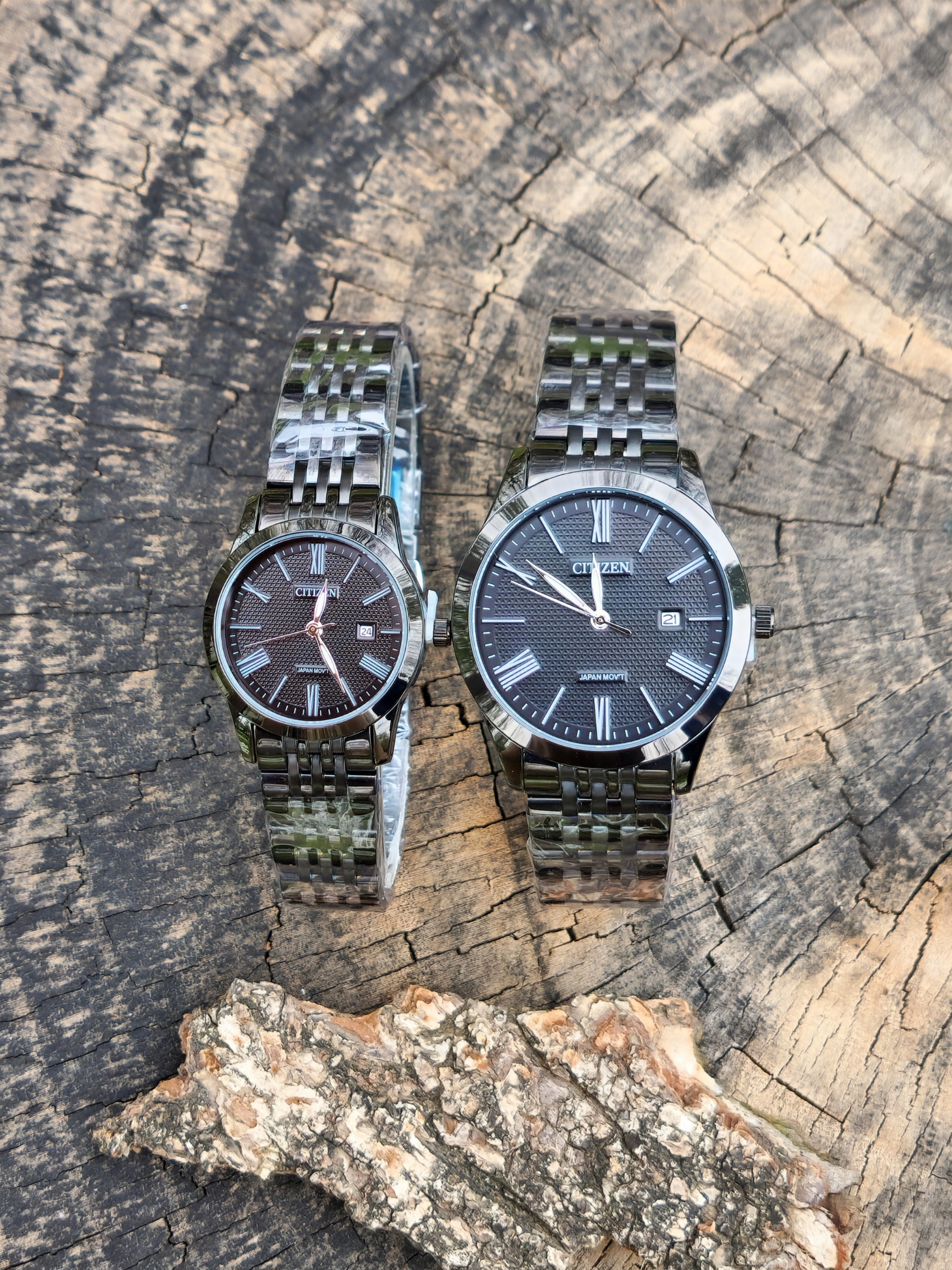 ست ساعت مچی سیتیزن رنگ استیل صفحه مشکی
